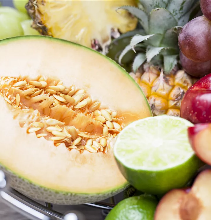 Die Zuckermelone (Cucumis melo) bildet Früchte, die süß schmecken und bereits ab Juli geerntet werden können. Für das optimale Wachstum der Zuckermelone werden ein sonniger Standort und durchlässiger, nährstoffreicher Boden benötigt.