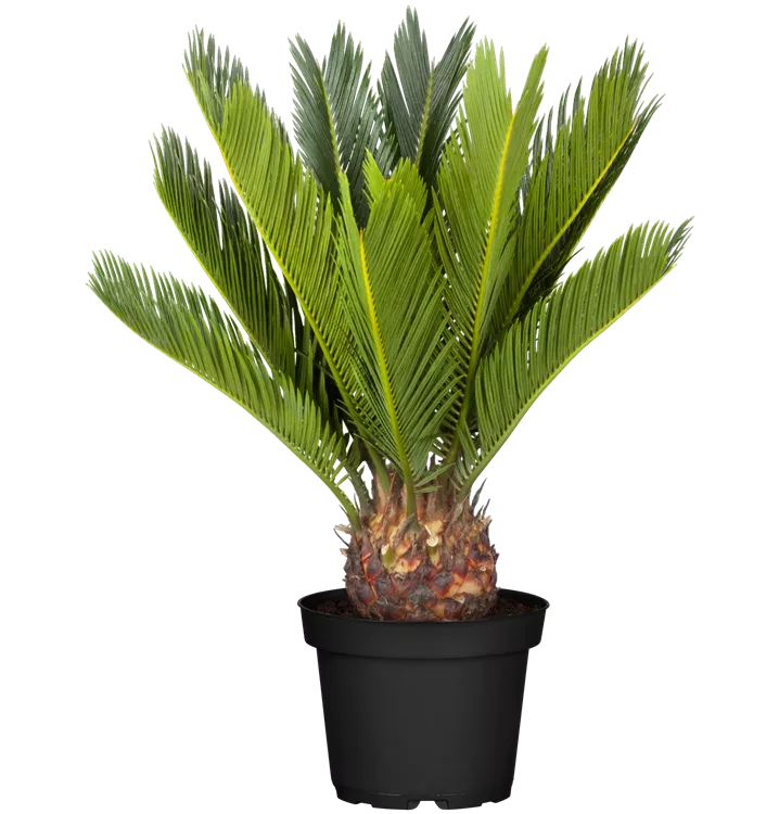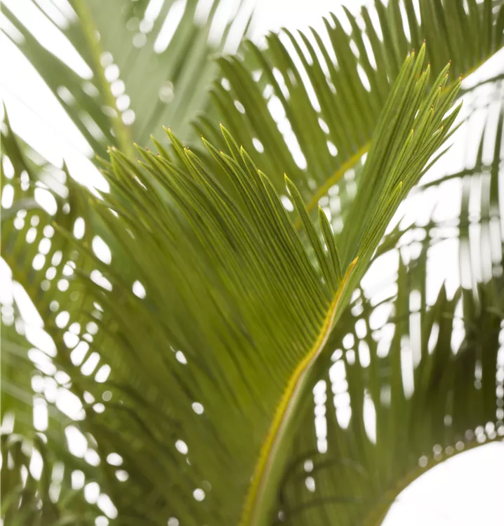 Der Palmfarn (Cycas revoluta) trägt dunkelgrüne, gefiederte Blätter. Diese aufrechte, ausladende und palmenähnliche Pflanze gedeiht am besten an einem sonnigen Standort.