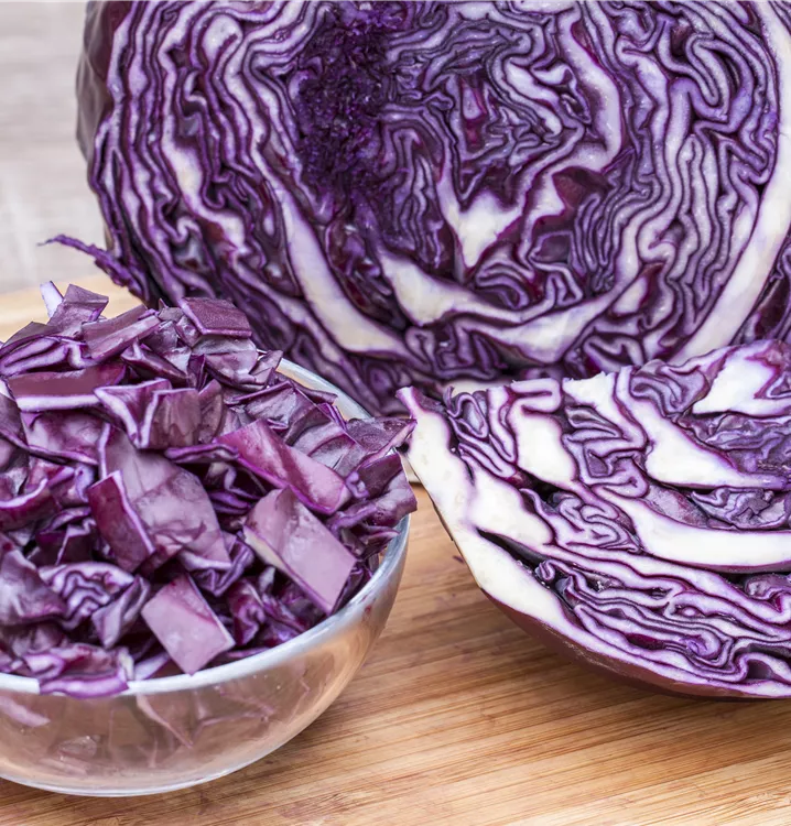 Der Rotkohl (Brassica oleracea var. capitata) ist eine aromatisch schmeckende Gemüsepflanze. Seine Blätter können geerntet werden, sobald er ca. 40 cm erreicht hat. Für das optimale Wachstum des Rotkohls werden ein sonniger Standort und durchlässiger, nährstoffreicher Boden benötigt.