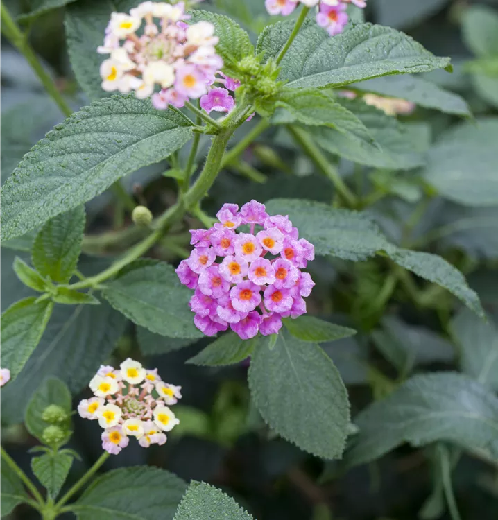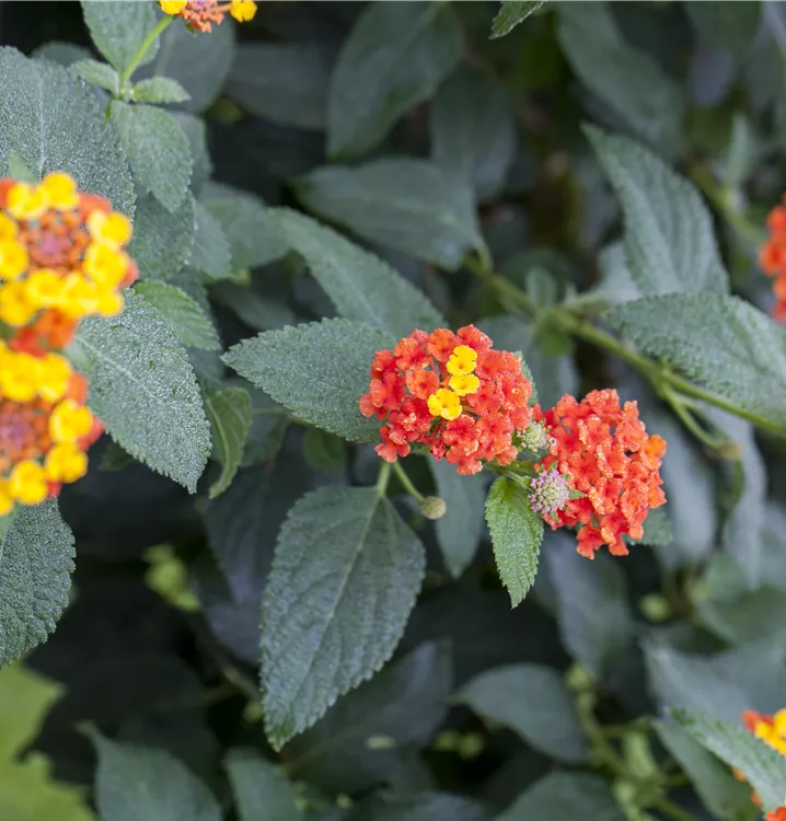 Das Wandelröschen (Lantana camara) ist eine beliebte, pflegeleichte Pflanze für den Balkon, die während der gesamten Saison unzählige orangegelbe, angenehm duftende Blüten bildet. Ein heller Standort und ein durchlässiges Substrat werden bevorzugt.