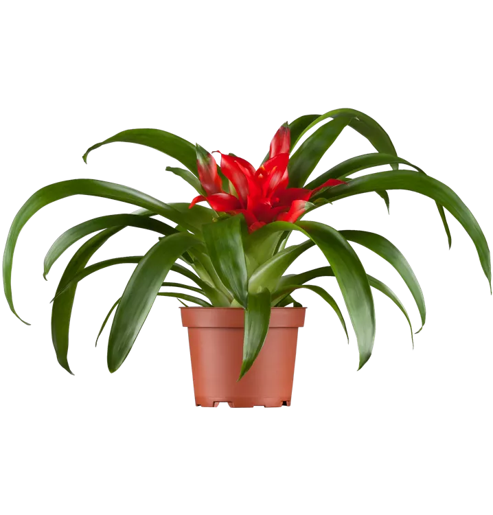 Die Guzmanie (Guzmania) ist eine weiß, gelb, orange, rot oder rosa blühende Pflanze, die lanzettliche, dunkelgrüne, ganzrandige Blätter trägt. Ihre trichterförmigen Blüten erscheinen von Dezember bis Februar. Diese aufrechte und ausladende Pflanze gedeiht am besten an einem sonnigen bis halbschattigen Standort.
