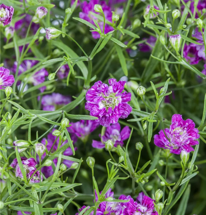 Das Mauer-Gipskraut (Gypsophila muralis) ist eine beliebte Pflanze für den Balkon, die während der gesamten Saison unzählige rosafarbene oder weiße Blüten bildet. Ein sonniger Standort und ein durchlässiges Substrat werden bevorzugt.