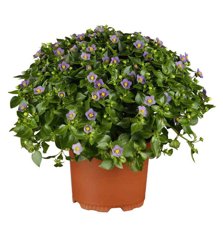Das Blaue Lieschen (Exacum affine) ist eine beliebte Pflanze für den Balkon, die während der gesamten Saison unzählige blaue oder weiße Blüten bildet. Die glänzenden Blätter sind herzförmig. Ein sonniger bis halbschattiger Standort und ein durchlässiges Substrat werden bevorzugt. Mit seinem kompakten Wuchs passt das Blaue Lieschen besonders gut in Blumenampeln und hängende Pflanzkörbe.