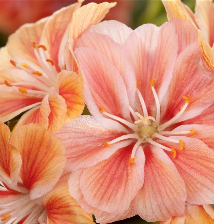 Lewisia cotyledon bildet schalenförmige, rosafarbene Blüten ab Mai.