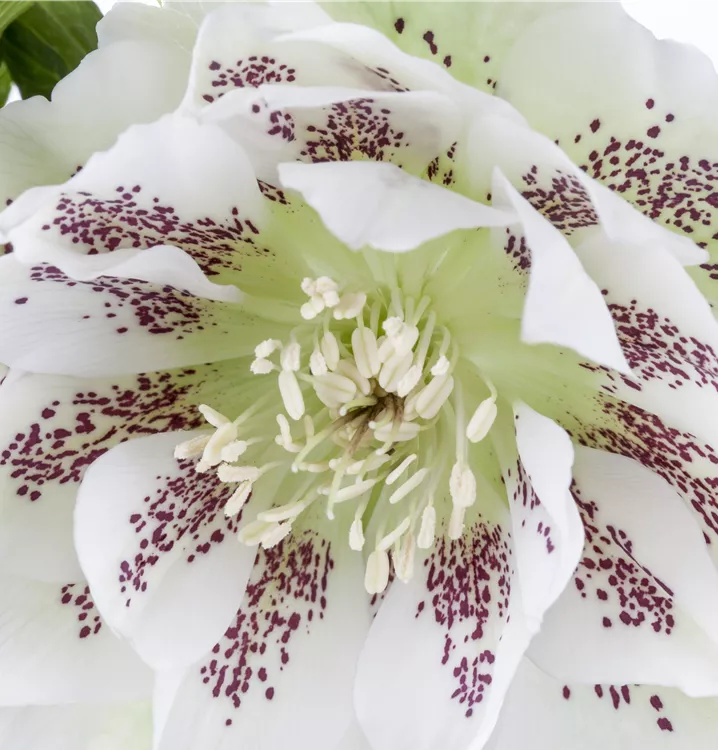 Helleborus orientalis bildet schalenförmige, hellgelbe, weiße, rosafarbene, dunkelrote Blüten ab Januar.