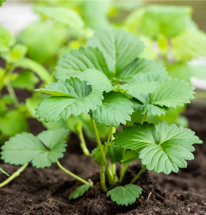 Fragaria x ananassa 'Elan' bevorzugt nährstoffreiche, ausreichend feuchte Erde.