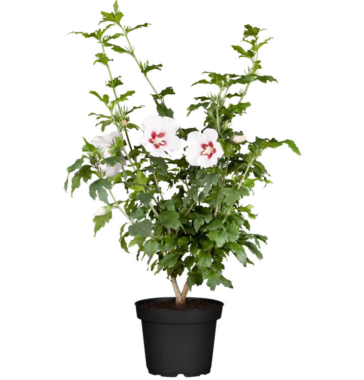 Roseneibisch ist ein aufrecht wachsender Strauch. Er erreicht gewöhnlich eine Höhe von 1,5 - 3 m und wird ca. 1 - 1,5 m breit.