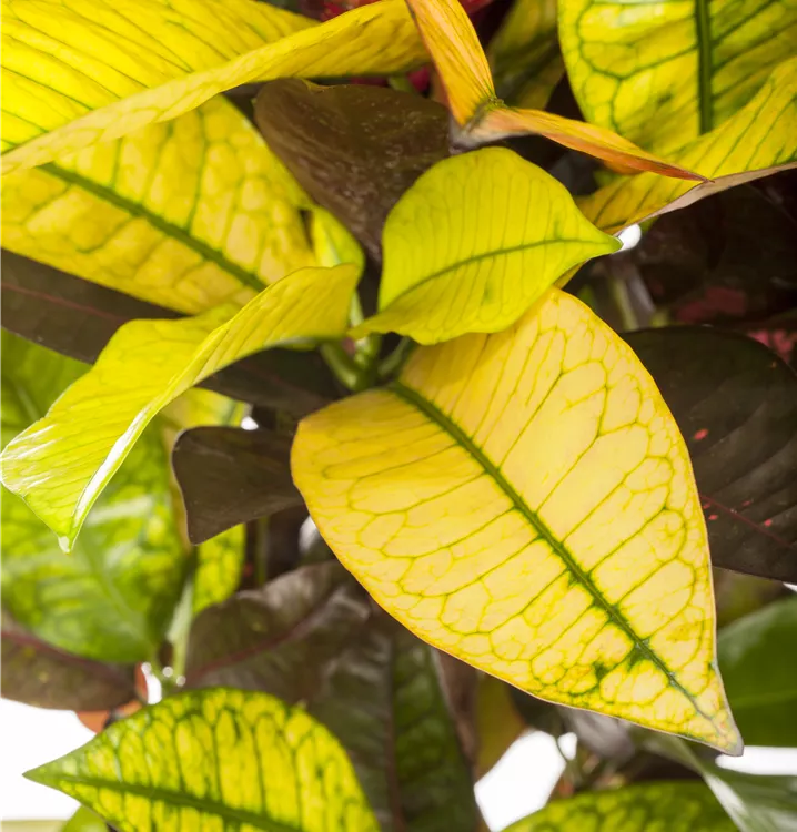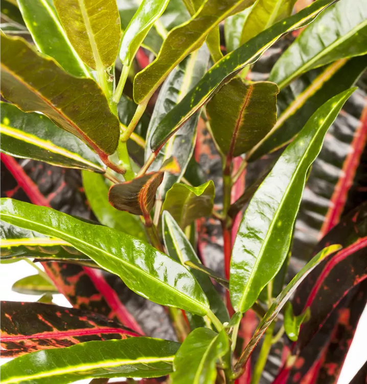 Der Wunderstrauch (Codiaeum variegatum) ist eine Pflanze mit dekorativen, mehrfarbigen Blättern. Sie sind lanzettlich. Diese aufrechte und strauchartige Pflanze gedeiht am besten an einem sonnigen bis halbschattigen Standort.
