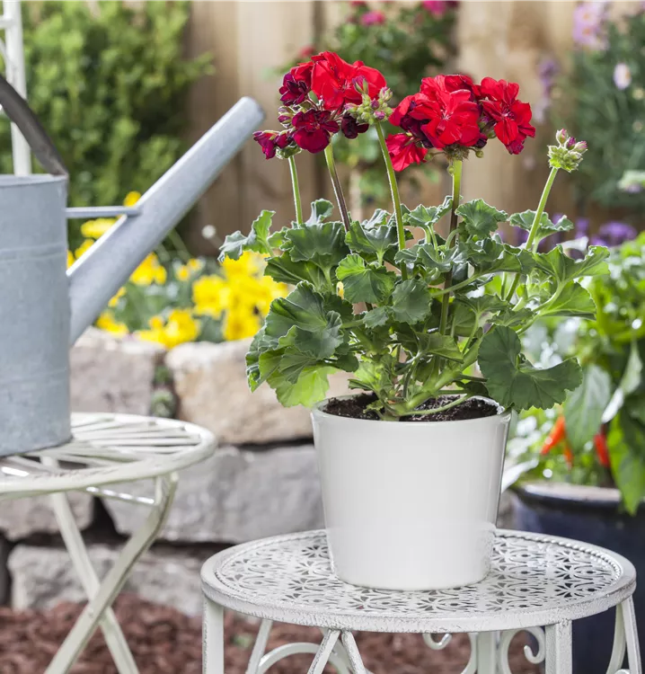Die Zonal-Pelargonie setzt schöne Akzente gemeinsam mit: