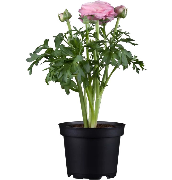 Die Ranunkel (Ranunculus asiaticus) ist eine beliebte, pflegeleichte Pflanze für den Balkon, die während der gesamten Saison unzählige weiße, gelbe, orangefarbene, rote oder rosafarbene Blüten bildet. Die mittelgrünen Blätter sind gefingert. Ein sonniger Standort und ein durchlässiges Substrat werden bevorzugt.