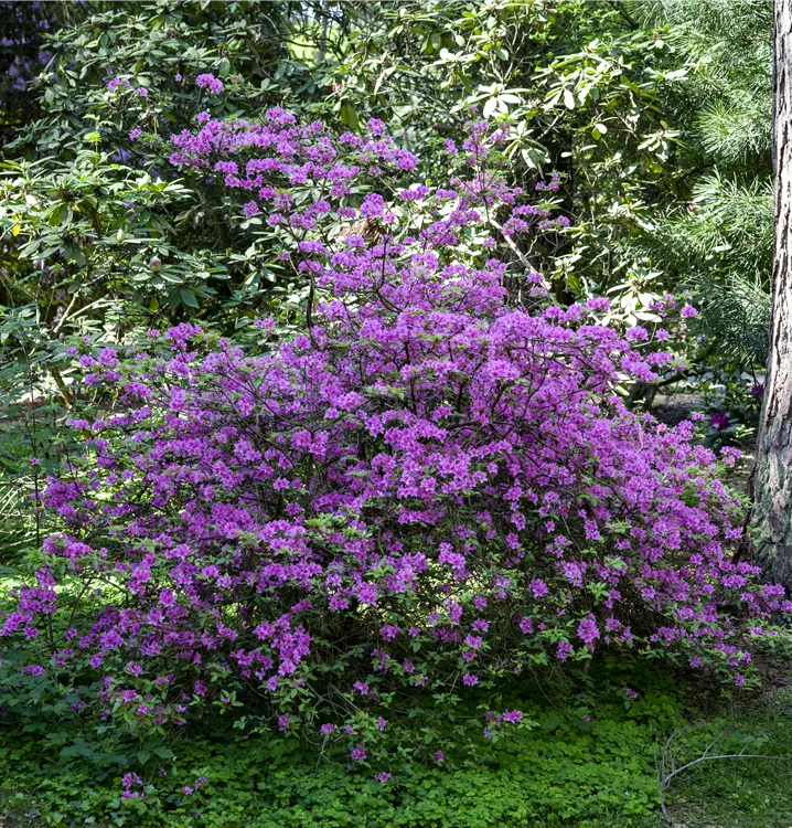 Der Vorfrühlingsrhododendron 'Praecox' weist eine gute Frosthärte auf.