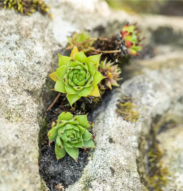 Die Dach-Hauswurz setzt schöne Akzente gemeinsam mit: