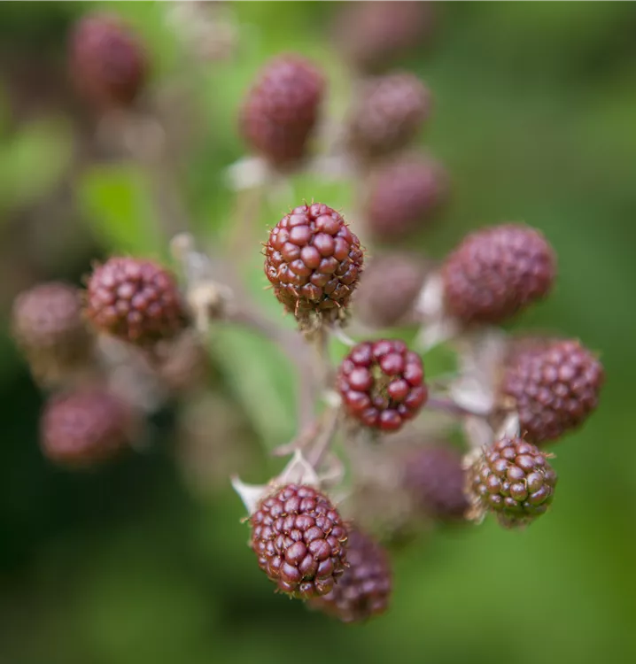 Die Brombeere (Rubus fruticosus) bildet schwarze Beeren. Diese sind aromatisch, fruchtig im Geschmack. Für eine ertragreiche Ernte ab August schaffen durchlässiger, humoser, nährstoffreicher Boden und ein sonniger bis schattiger Standort optimale Bedingungen. Ihre weißen Blüten sind eine schöne Erscheinung.