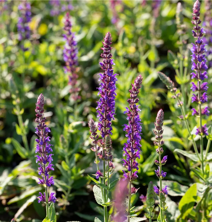 Salvia nemorosa 'Ostfriesland' bildet lippenförmige, in Rispen angeordnete, violette Blüten ab Juni. Diese werden etwa 5 - 10 cm groß. Bei richtiger Pflege Nachblüte im September.