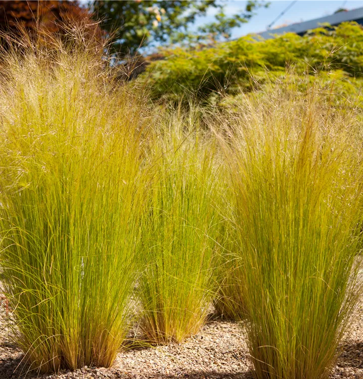 Das Zarte Federgras (Stipa tenuissima) ist mit seiner hellgrünen Blattfärbung ein dekoratives Gestaltungselement im Garten, welches ebenso mit seinem ausladenden und horstbildenden Wuchs hervorsticht. Die cremeweißen Blütenrispen schmücken diese Gras ab Sommer. An einem sonnigen Standort mit einem möglichst durchlässigen, lockeren, trockenen Boden fühlt es sich am wohlsten. Bei günstigen Bedingungen erreicht dieses winterharte Gras eine Höhe von ca. 50 cm und wird bis zu 30 cm breit.
