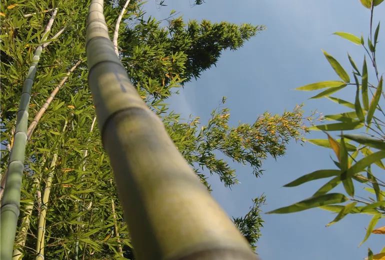 Bambus-Arten gibt es viele. Und so unterscheiden sich auch die Besonderheiten beim Bambus je nach Art. Aber eines haben sie alle gemeinsam: ihre Herkunft. Denn Bambus gehört zu den Süßgräsern, ist mit Mais, Hafer und Weizen verwandt und stammt ursprünglich aus Ostasien. Und dieses asiatische Flair ist es auch, das Gartenbesitzer so schätzen und lieben. Die unterschiedlichen Arten sorgen für Abwechslung im Garten und abgesehen vom echten Bambus sind hierzulande alle anderen Bambus-Arten winterhart. Und diese Arten sind sehr vielfältig, denn es gibt knapp 50 verschiedene mit mehr als 1000 Sorten. Da kann man schon mal ins Sammeln verfallen, wenn man sich einmal in den asiatischen Touch der Süßgräser verliebt hat, oder? Die Besonderheiten beim Bambus beinhalten auch die verschiedenen Wuchsformen. Denn bei diesen Pflanzen unterscheidet man in drei Gruppen: Riesenbambus, der bis zu 9 Meter groß werden kann, mittlerer Bambus, der zwischen 3 und 9 Meter groß wird, kleiner Bambus, der zwischen 1,5 und 3 Meter hoch wächst und Zwergbambus, der eine Höhe von bis zu 1,5 Metern erreicht.