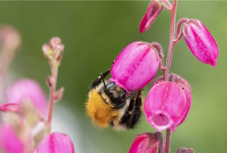 Ohne Wildbienen, Honigbienen, Hummeln und andere Insekten könnten viele Pflanzen nicht bestäubt werden. Diese kleinen Helfer, die von Blüte zu Blüte fliegen, saugen den süßen Nektar aus den Pflanzen heraus, aus dem Honigbienen dann den Honig machen. Die Blütenpollen bleiben dabei meist an den Bienen hängen, was man bei genauerem Hinsehen auch erkennen kann. Diese dienen den jungen Bienen als eiweißreiche Nahrungsquelle. Doch bleibt auf jeder angeflogenen Blüte etwas von dem Pollen oder Blütenstaub der vorherigen Blüten hängen. So kommt es zur Bestäubung der Pflanzen, wobei nicht jede Bestäubung auch automatisch zur Befruchtung führt. Ein Grund mehr, Bienenpflanzen für den Balkon zu wählen, denn ohne Bestäubung kommt es nicht zur Befruchtung und dann gibt es weder Samen noch Früchte.