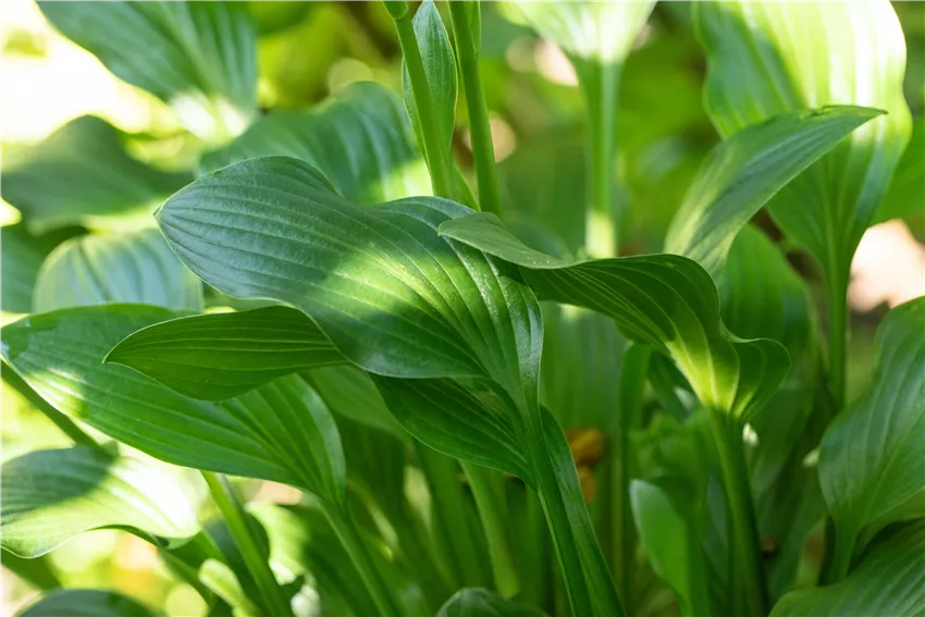Funkien gehören zweifelsohne zu den Top 10 der beliebtesten Blattschmuckstauden. Die besonderen Blätter machen es ihrem Besitzer aber auch einfach, geliebt und bewundert zu werden. Denn Funkien sind bekannt für ihre kräftigen Farben, die besonderen Muster und die klaren und nahezu perfekten Blattstrukturen. Vor allem in ihrer Heimat in Korea, Japan und China werden sie wegen der klaren Blattform seit vielen Jahrhunderten geschätzt. Bei uns ist die Blattschmuckstaude 2009 zur Staude des Jahres gewählt worden und diesen Titel hat sie sich allemal verdient. Sie sorgt für Abwechslung im Schattenbeet und zeigt, dass es nicht immer imposante Blüten sein müssen, die für Aufsehen sorgen. Vor allem die Blätter sind es, die Funkien bei Gartenbesitzern so beliebt machen. Sie sind ein- oder mehrfarbig, schlicht oder gemustert und von klein bis XXL zu finden. Mit mehr als 40 verschiedenen Arten bleiben hier wirklich keine Wünsche offen. Und sogar die einfarbigen Sorten zeigen, dass es ein strahlendes Grün sein kann, dass aus einem schattigen Plätzchen etwas ganz Besonderes macht.