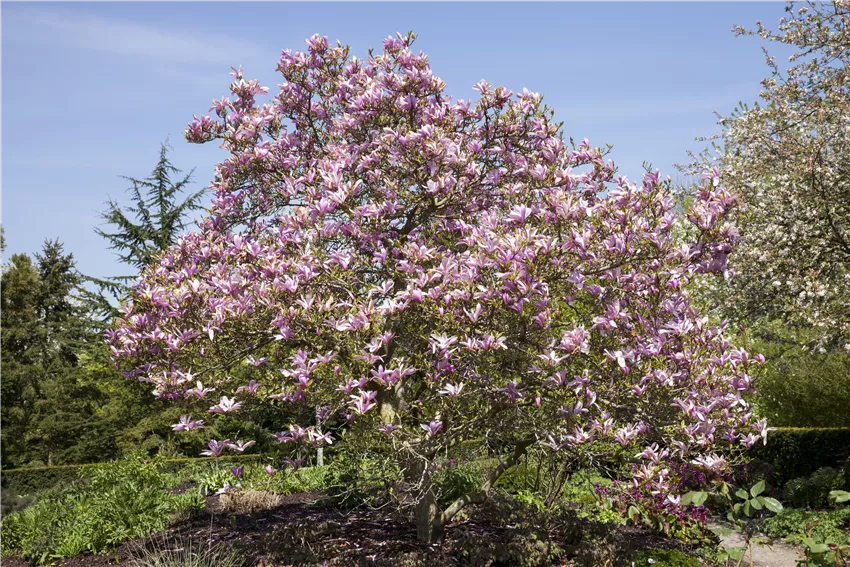Die Ziergehölze machen es ihrem Besitzer sehr leicht, geliebt und umsorgt zu werden. Denn Stern-Magnolie, Tulpen-Magnolie und Co. bedanken sich mit den schönsten Blüten, die der frühblühende Garten zu bieten hat. Bei der weiteren Pflege nach der Pflanzung wird nicht viel Arbeit anfallen, denn Magnolien benötigen keinen regelmäßigen Rückschnitt. Man sollte sie einfach so wachsen lassen, wie es ihnen am besten gefällt. Ein kleiner Schnitt zur Erziehung und zur Korrektur ist aber erlaubt und die Pflanzen werden nicht darunter leiden. Zusammen mit Rhododendren machen sie im Frühjahr eine richtig gute Figur und als Unterpflanzung eignen sich frühblühende Zwiebelblumen wie Narzisse, Tulpe, Krokus und Co. Damit kann man sich schon früh den Frühling in den Garten holen und viele Jahre von den beeindruckenden Blüten der Magnolien profitieren.